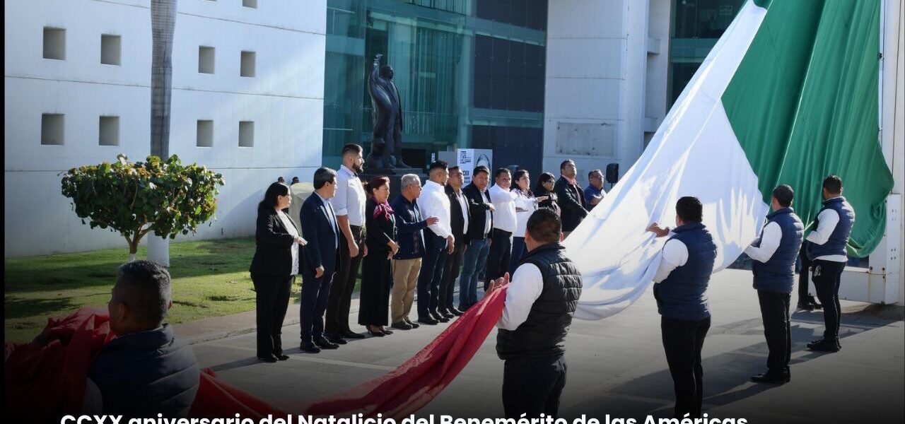 Como parte del acto conmemorativo, integrantes del presídium depositaron una ofrenda floral y montaron una guardia de honor ante la estatua de Benito Juárez García, en reconocimiento a su legado histórico y a su contribución en la transformación del país.