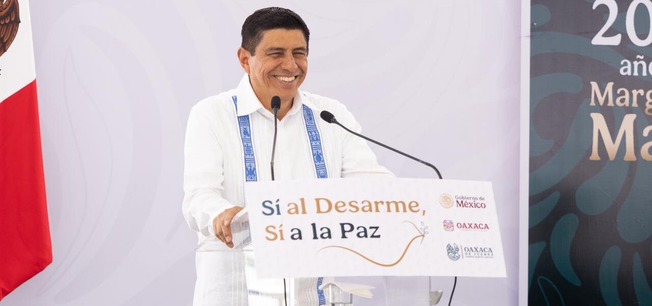 Oaxaca de Juárez, Oax., 22 de abril de 2026.- El Gobernador del Estado Salomón Jara Cruz afirmó que Oaxaca se suma con convicción al programa federal “Sí al desarme, sí a la paz”, porque esta última se construye con participación, justicia y oportunidades.